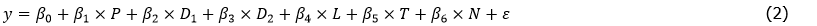 ϵ represents the residuals (assumed to be identical and independently normally distributed).