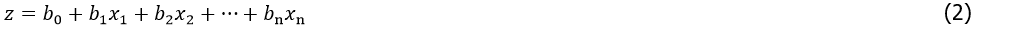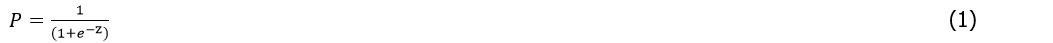 P is the probability of landslide occurrence. The value of P varies between 0 and 1 and z varies between −∞ and +∞