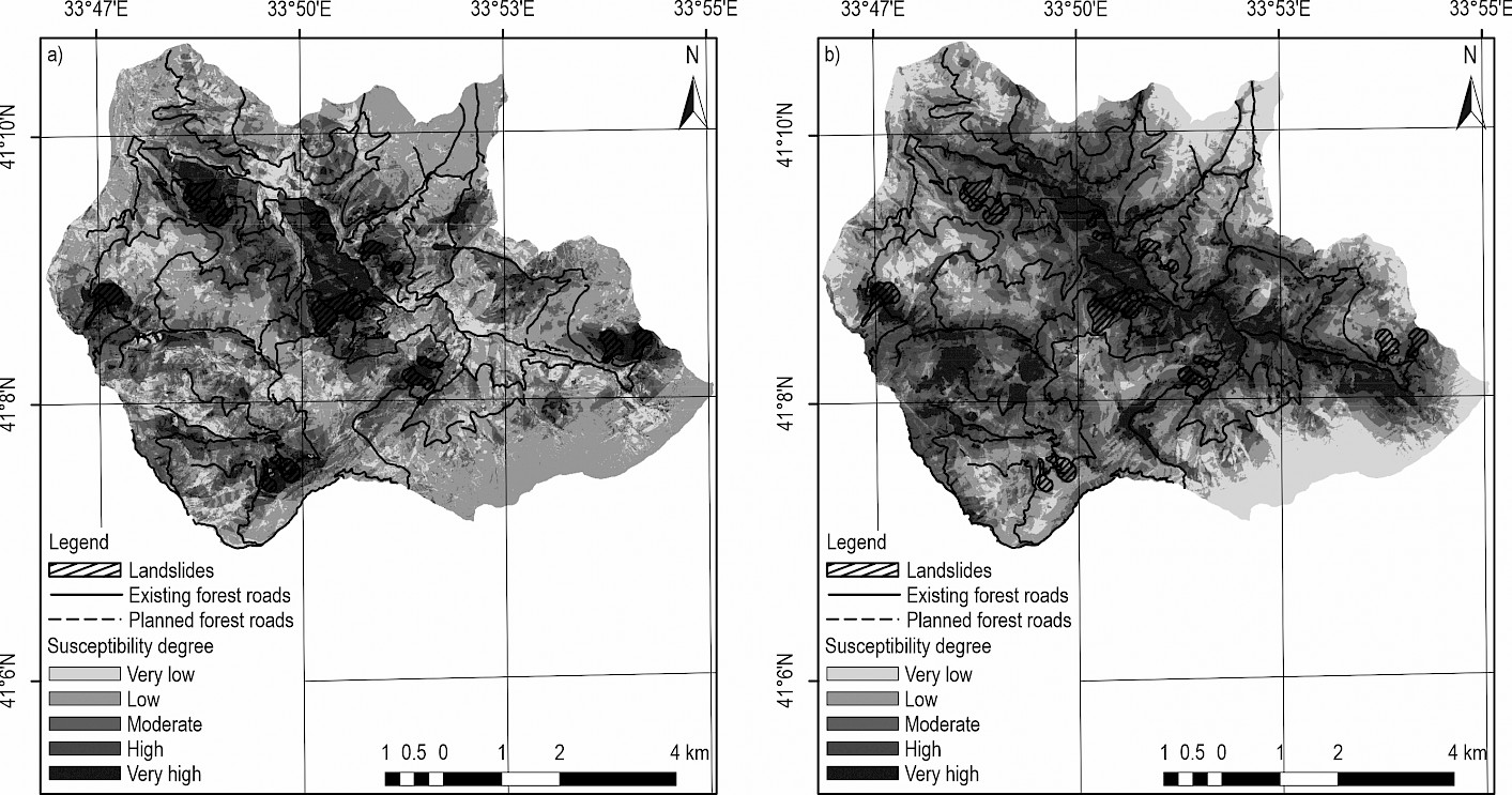 Keywords: landslide susceptibility mapping, Handüzü forest management unit, Logistic Regression (LR), support vector machine (SVM), distance to forest roads, Kastamonu