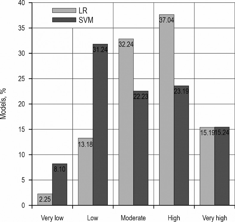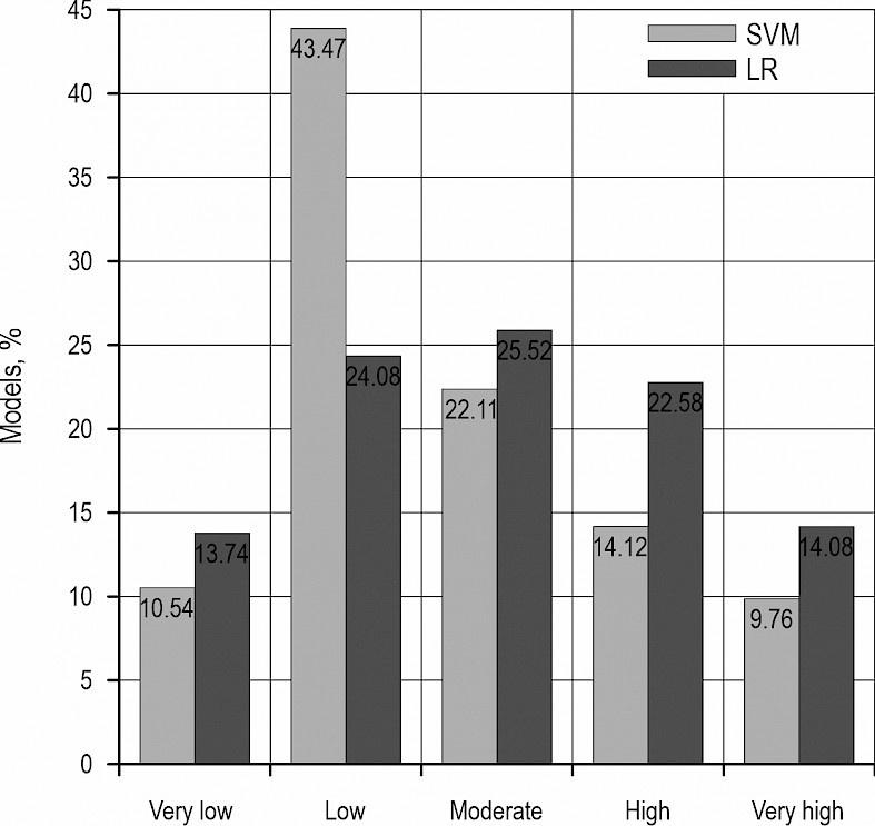 SVM, which is used in many supervised learning tasks and is theoretically based on solid foundations, was first designed by Cortes and Vapnik (1995). In SVM, which is commonly used for classification problems and extended to solve regression tasks, the fundamental idea is to find a hyperplane that separates the data in a sample dataset into two classes when considered in the context of binary classification (Boswell 2002). In cases in which the data cannot be linearly separated, SVM uses kernel functions such as linear kernels, polynomial kernels, sigmoid kernels, or radial basis function (RBF) kernels to achieve linear separation. The kernel function commonly used in landslide susceptibility mapping studies is the RBF (Akinci and Zeybek 2021, Akinci et al. 2022, Ye et al. 2023). In this study, the »svmRadial« method of the »caret« package (Kuhn 2008) was used in RStudio Desktop (Version: 2023.12.1) to implement the SVM algorithm. In most ML algorithms, there are parameters known as hyperparameters that need to be adjusted before the model training phase to construct a robust model. The RBF-based SVM has two important hyperparameters. These are c, also known as cost parameter, and gamma (γ). The caret package uses sigma (σ) instead of γ to control the shape of the separating hyperplane (Bhatia and Chiu 2017, Akinci et al. 2022). In the caret package, there are two ways to tune the hyperparameters of an algorithm: tuneLength and tuneGrid. The tuneLength allows the system to tune the algorithm (i.e., the hyperparameters) automatically. In this study, the tuneLength approach was used to tune the hyperparameters. In practice, the tuneLength value was set to 6, and the parameters were c=8 and σ=0.065.