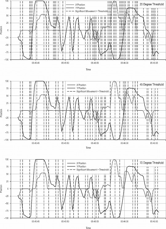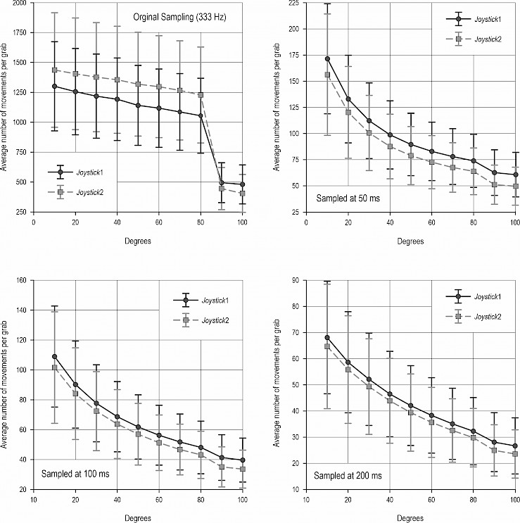 using the case study, show factors affecting operator workload as determined by the number of joystick movements.