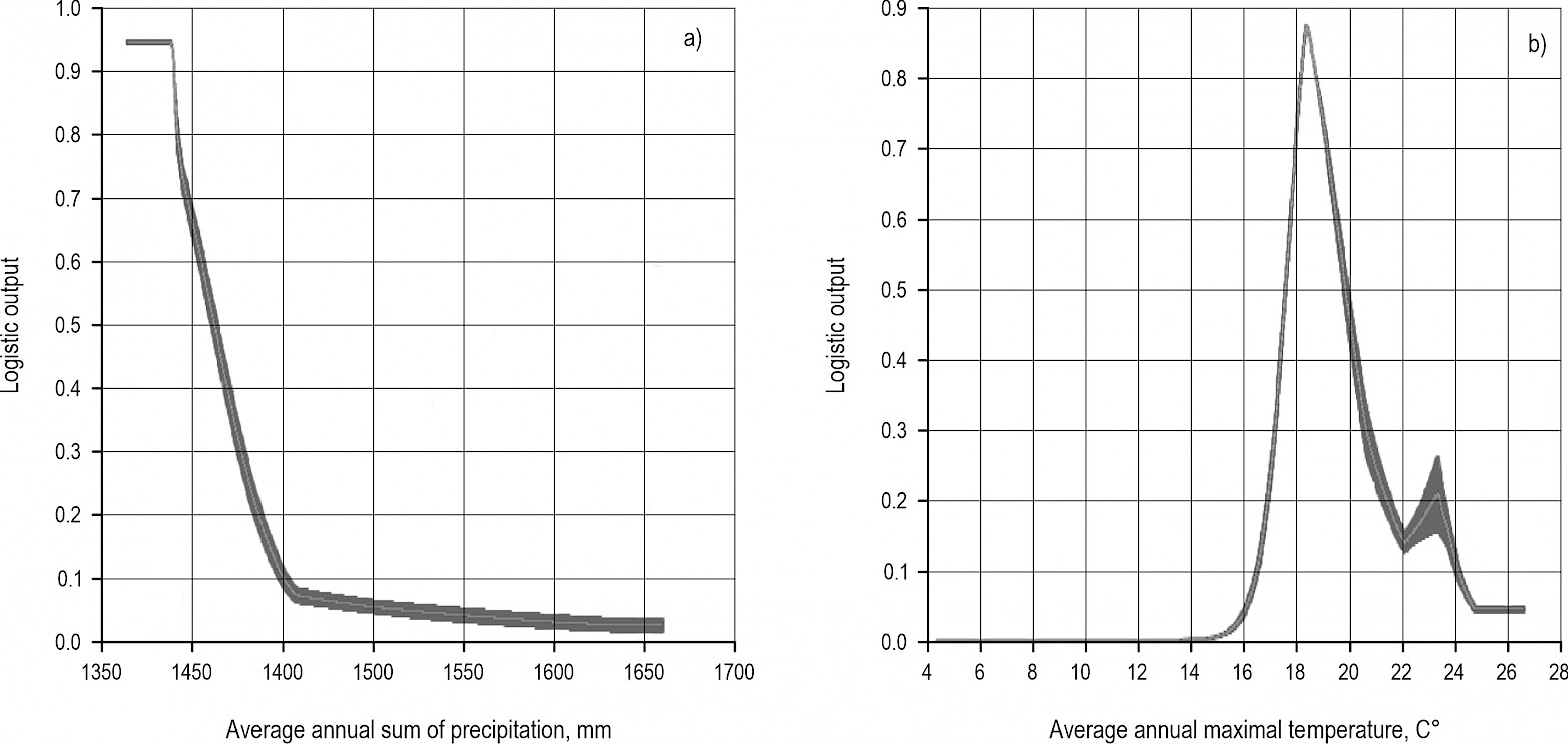 Keywords: species distribution model, average annual sum of precipitations, average annual 24-hour maximum carbon dioxide concentration, Bosnia and Herzegovina