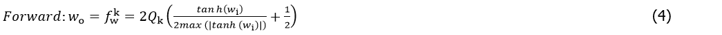 Qk quantizes a real-valu wi to a k-bit value wo in [0, 1], where tanh(۰) restricts the weight to [–1, 1].