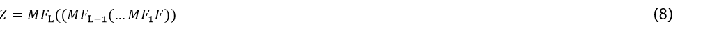 For a given input F Rc×n, the Mixer Forests (MF) produce an output of the same shape Z Rc×n (Z is of the same dimension as F). Since it has an isotropic structure, this output is used as an input to continue feeding it into next Mixer Forests (MF) until L consecutive blocks are produced, as shown in Eq.(8):