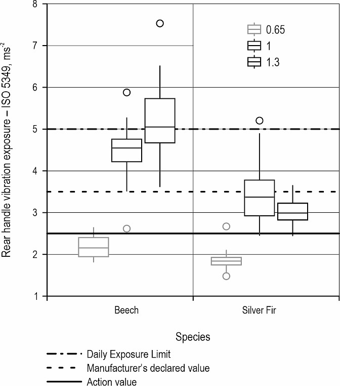 A further analysis has been focused on the values of vibration measured for each operator and on the operators’ grip strength on the chainsaw handles to evaluate the behaviour in handling the tool. The comparison between the vibration values measured and the manufacturer’s declaration was also conducted to highlight any deviations from safety and technical recommendations to provide guidelines to simplify the risk assessment procedures.