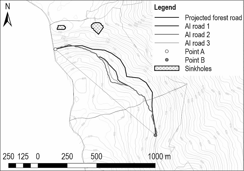 - analyze the potential of automated alignment tools to support early-stage decision making in forest road planning.