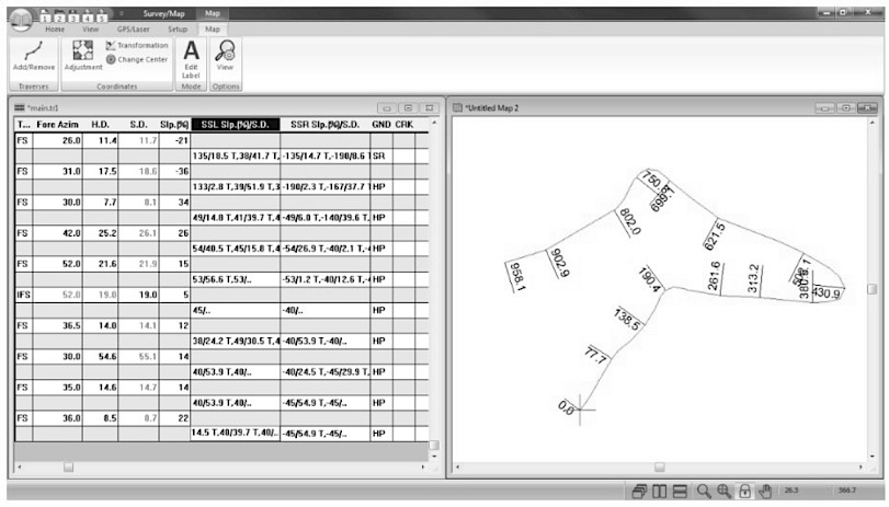 The operational design of the same road will be developed from data collected directly in the field, which will subsequently be processed and analyzed in RoadEng (Fig. 2). In forest road engineering practice, the zero line represents a preliminary field alignment established directly on the terrain using traditional surveying instruments, serving as the reference trace from which the final road geometry is developed and forming the basis for operational design. The zero line is the filed-based grade control line.