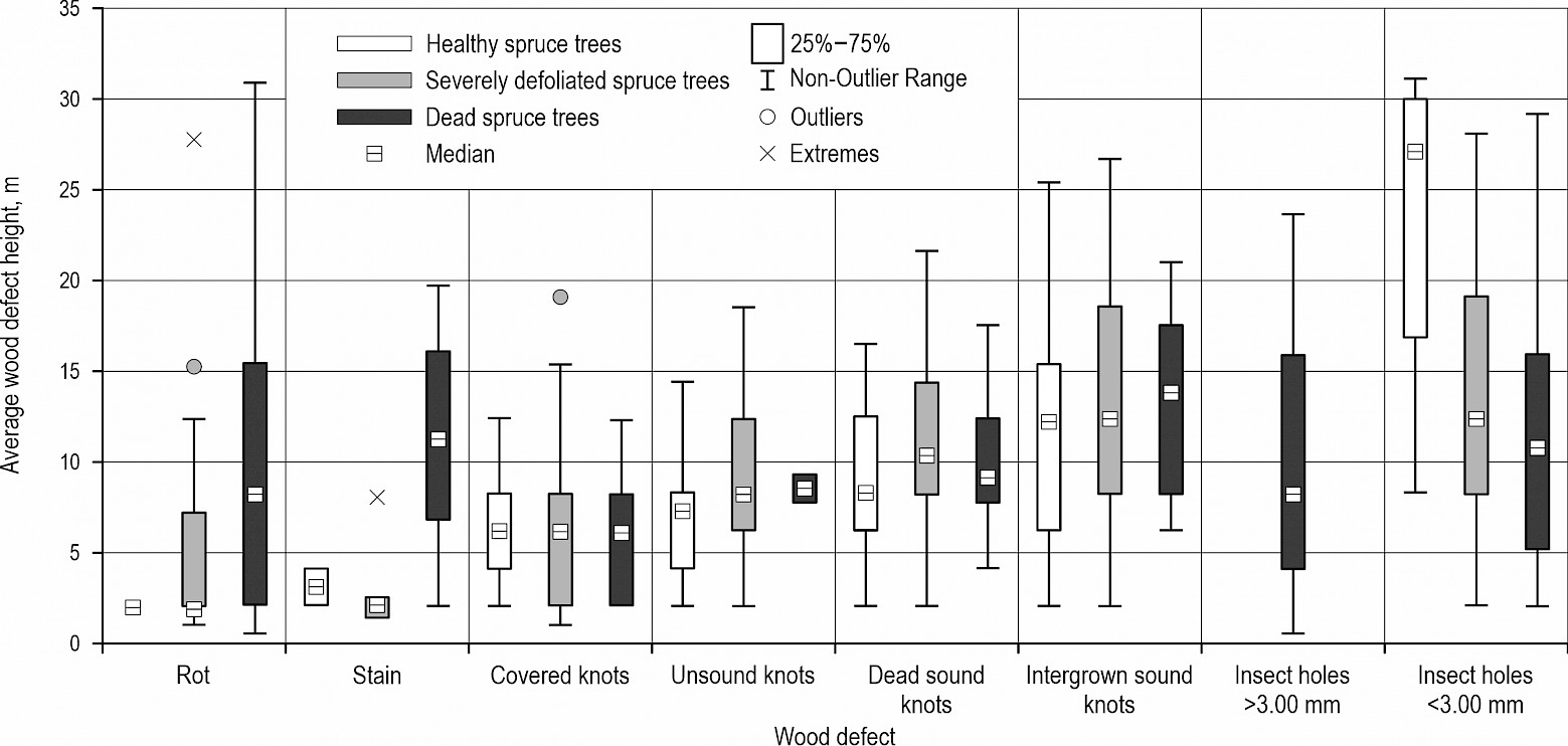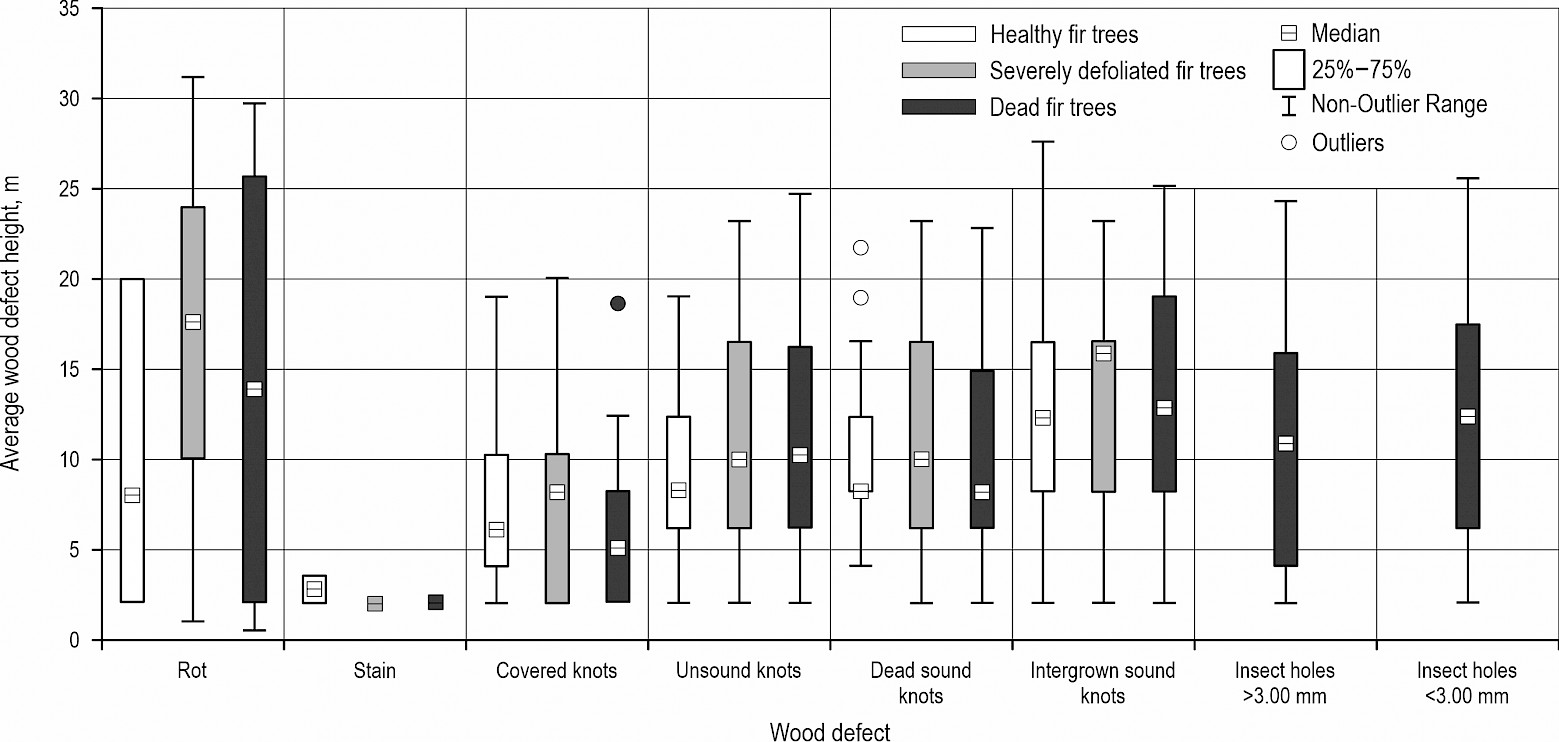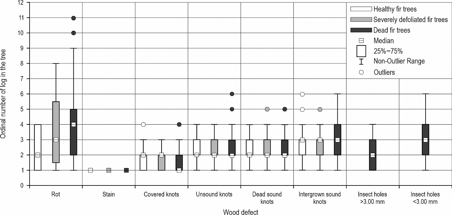 correlation between tree crown defoliation degree and wood defect presence